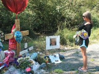 A tearful Barry visited a roadside memorial Aug. 24 at the intersection where Bockman died and talked about how her life had changed since the accident.