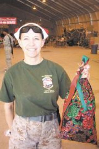 Soldiers with the Marine Aviation Logistics Squadron in Iraq were all smiles after picking up their goodie-filled stockings from Enumclaw's Operation Adopt a Stocking for a Soldier program. Through fabric donations,