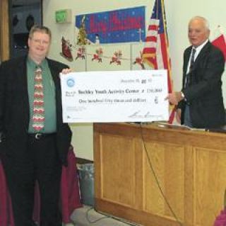 Pierce County Councilman Shawn Bunney presented the council with the county's contribution to the construction of the planned youth center. The money will be added to a $200,000 Housing and Urban Development grant secured by former Congresswoman Jennifer Dunn.