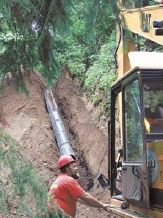 The line runs parallel to the old main, which was found to be corroded and collapsed in places. The new line begins at state Route 410 between the Baron Manfred von Vierthaler Winery Restaurant and Myers Road. The pipeline travels down the slope to state Route 162 at Riverside Drive West.
