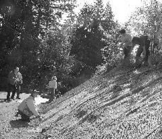Another group, which included Bonney Lake resident and Enumclaw High School teacher John Hofstrand and Sumner High School students Evan McCauley and Joe Stewart, placed erosion blankets on hillsides.