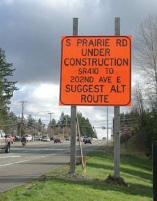 Signs went up on state Route 410 last week warning drivers an alternate route may be needed while Tacoma-based Woodworth and Company construction crews complete the project.
