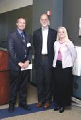 Enumclaw Community Hospital was one of 20 organizations recently chosen to receive a $1,000 "Thank You" grant on behalf of Boeing employee Therese Walters. Boeing employees were invited to nominate an agency that has touched their lives and helped them or a family member through a difficult time. The Boeing Employees Community Fund board of trustees reviewed the nominations and selected the hospital for its caring and compassionate service. Above, Walters and Tom Watt, vice president of government and community relations at Boeing presented Alan Predmore (left), second vice president of the Enumclaw Community Hospital Foundation, with a $1,000 check, at a special luncheon Aug. 2, in Renton.