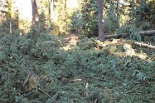 Russell went through the forest to assess damage to trees and found extensive root rot.