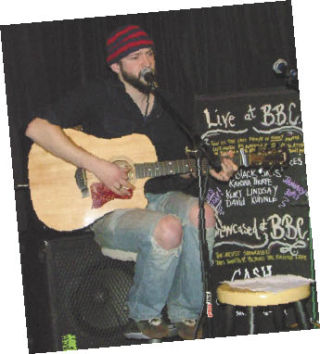 Musician Travis Barker performs at Beyond the Bridge Cafe’s open mic night.