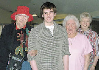 Warren Wheeler is surrounded by some of his new friends from the Bonney Lake Senior Center.