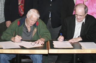 The Lake Tapps Community Council and Chuck Clarke, chief executive officer for Cascade, signed a memorandum of agreement Friday at the Tapps Island Club House.