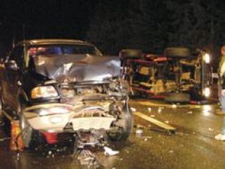 An accident on state Route 410 just south of 241st Street in Enumclaw on Saturday night sent three people to the hospital and caused a major delay on the highway. Photo by Teresa Herriman