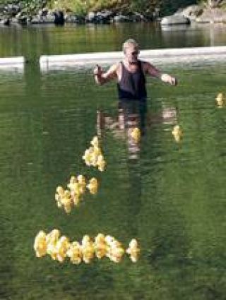 As the first ducks reached the finish line, they brought prizes for those who had bought ducks as part of the annual fund raiser sponsored by the Enumclaw Community Hospital Foundation and local Rotary Club. The two groups split the profits, about $7,200 for each.