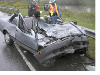 Troopers reported the Mercedes fishtailed into the southbound lanes and the Nissan crashed into the side of the Mercedes. The force of the crash tore the Mercedes in half. The front half of the car ended up near the highway’s guardrail, while the rear half spun into the Puyallup River.