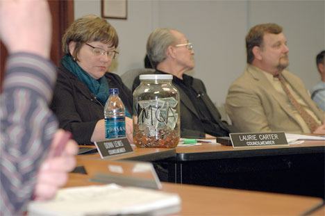 Counted after the meeting, Carter said the jar totaled $72, not including a $100 pledge from a business owner. It’s not much, but not bad, since the fundraising hasn’t officially started.