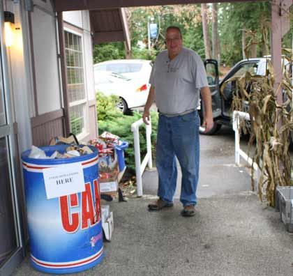 Bonney Lake Food Bank Director Stew Bowen picks up food donated at the Bonney Lake Senior Center Nov. 19. Donations from the seniors