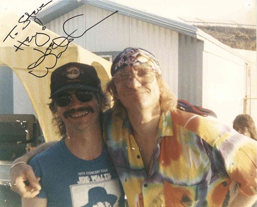 It starts with Lemco and a friend posing as roadies to sneak backstage. And from there it just… kind of doesn’t stop. At intervals of several years at a time, he tracks down motorcades to after-parties, hands Walsh poetry, picnics with family of the Eagles, talks his way past armed police and arranges for a connected hotel room next to Walsh’s in a locked down hall. That last example, the third substantial meeting between the two, almost put Lemco on the Very Suspicious list.