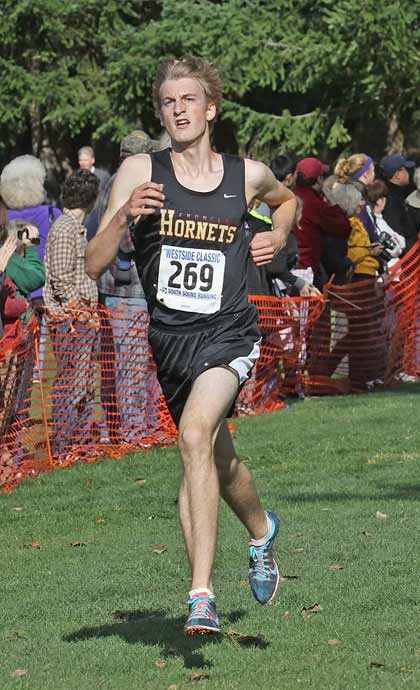 Also representing the Hornets at the district meet were Peter Berger, 47th, 17:46; Josh Sanders, 50th, 17:50; Kevin Halson, 74th, 18:29; Justin Richenburg, 81st, 19:01; and Dylan Hamel, 84th, 19:12.