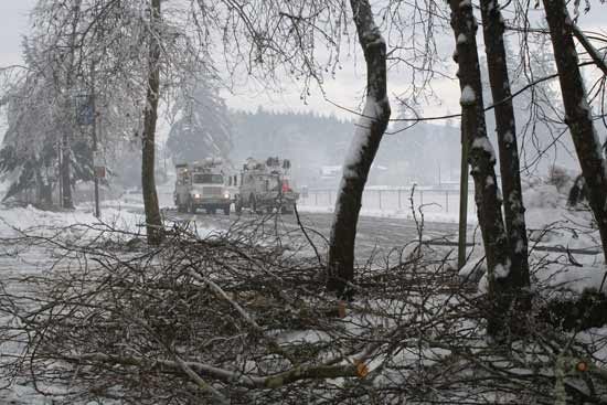 Given the magnitude of the damage caused by this week’s storms, PSE predicts many areas will remain out of power through the weekend, and some beyond. Better restoration information will be available as our crews are able to gain access to hard hit areas today. In addition, snow and ice-laden trees continue to have potential to cause new damage—and we are watching for expected strong winds tonight and into Saturday.