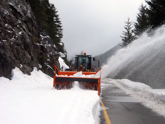 With snow blowers and a bulldozer working together, the annual State Route 410 clearing effort is under way. From the northwest entry to Mount Rainier National Park to the Cayuse Pass summit (elev. 4,675 ft.), it’s a race against nature to open State Route 410 in time for early spring and summer travel.