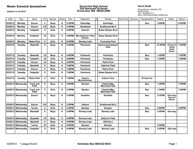 The Enumclaw High sports schedule for Monday March 28 through Saturday March 31.