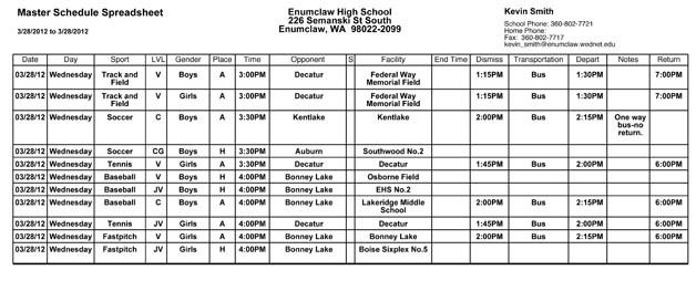 The Enumclaw High School sports schedule changes are in for today, March 28.
