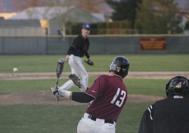 Tyler Carlson hits a ball for Enumclaw in a losing effort to Auburn Mountainview Friday at Osborne Field.
