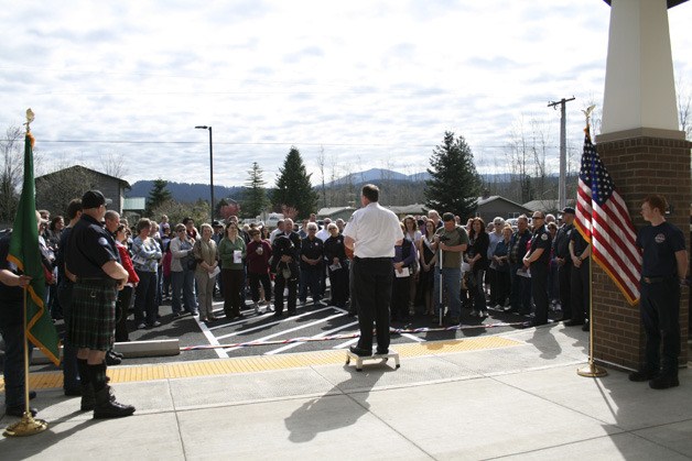 Alan Predmore, Buckley Fire Chief, addressed the gathering along with Mayor Pat Johnson.