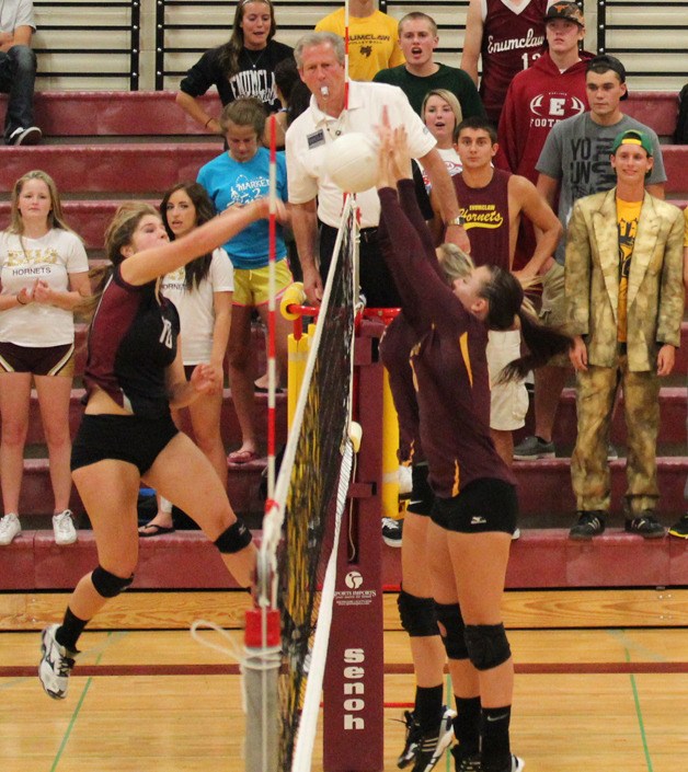 The Enumclaw Hornets volleyball team won Monday’s away conference match against Peninsula by a score of 3-0