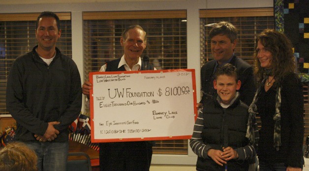 On Valentine’s Day evening, while some were sharing a romantic night with their sweetie, the Bonney Lake Lion’s Club and Don Stevenson passed the University of Washington Eye Institute an $8,100 love note.