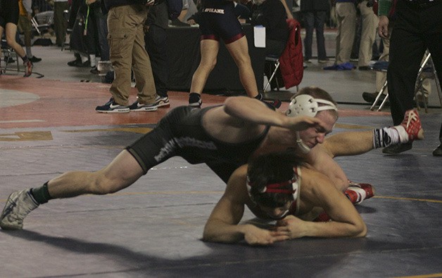 Colton Tracy won his semifinal match at 132 pounds Saturday at the Tacoma Dome.