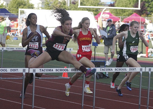 Maria Blad repeated her district championship performance wining the state crown in the 100-meter 3A girls hurdles at Mt. Tahoma Stadium Friday, May 30. She will be running in the 300 hurdles tomorrow.