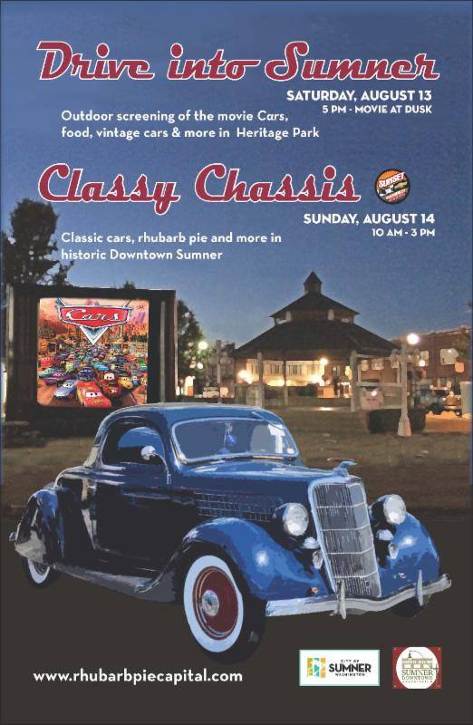 And, for the first time, on Saturday night before that, Drive Into Sumner will feature an outdoor showing of the movie Cars with car-related games, food, and a cruise-in.