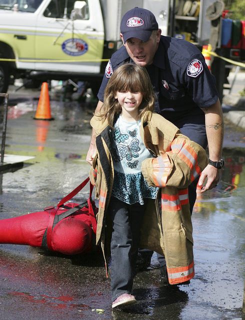 The highlight every year for most kids is the chance to play firefighter. Younger children suit up in pint-size firefighter gear to put out a ” fire” and perform a “rescue”. Older children are offered a more challenging course, shooting water from a hose at a target and performing a “rescue”.