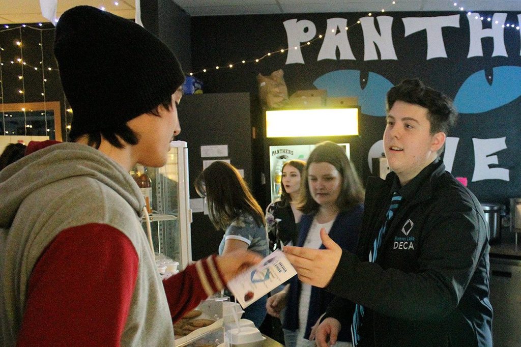To work up some hype about the event, the DECA team – led by Madi Vendoloski, Jessica Hobley and DECA President David Azure – put on a fundraiser where all the money raised in the Bonney Lake High School Den (the student-run school store) on Nov. 9 was donated to the Lions 4 Kids House.