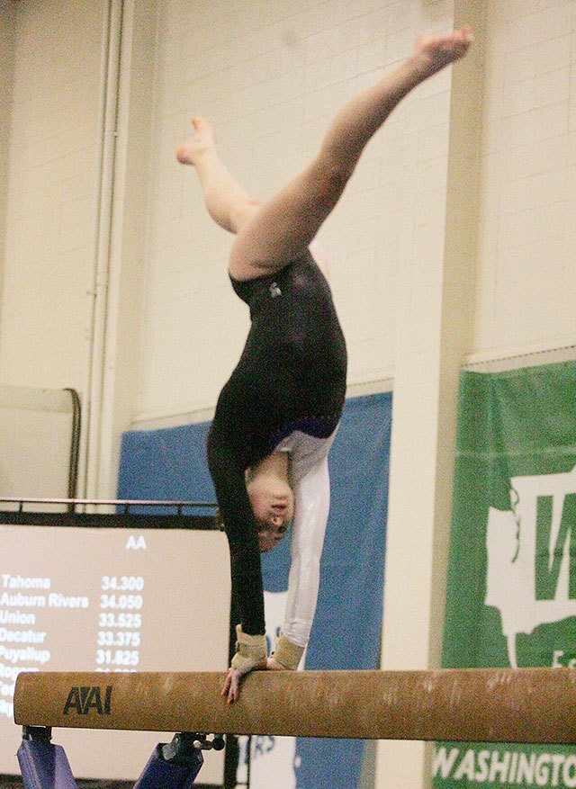 The state gymnastic championship meet featured girls from Sumner, Enumclaw, Bonney Lake and White River high schools.