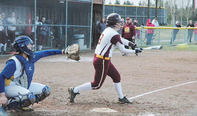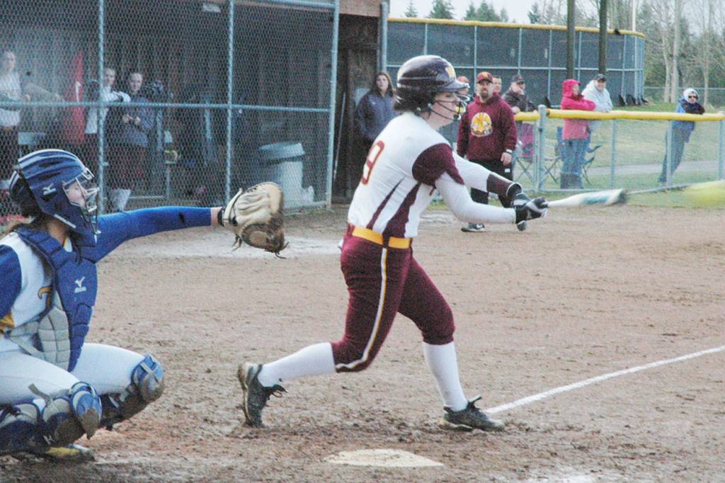 Above, senior Alli Brewer puts a ball in play during an early-season victory over Fife.
