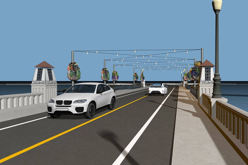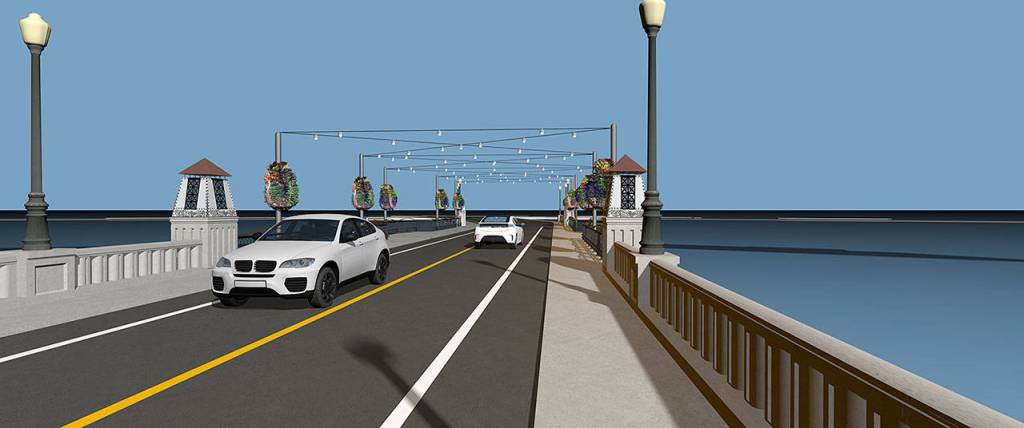 On the bridge itself, Palmer said the council decided on a design that mirrored the old bridge’s railing and lantern posts.