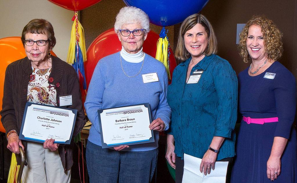 There were 15 honorees during the Oct. 28 ceremony, including Enumclaw’s Barbara Braun and Charlotte Johnson. Each was recognized as a 2017 Friends of the Library Hall of Fame Honoree.
