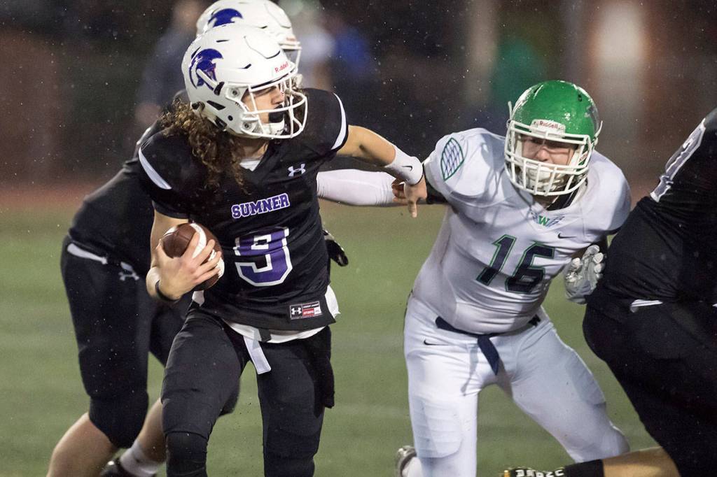 While Sumner is perennially known for its stout defense, the Falcons’ season numbers were even better. Woodinville allowed fewer than 10 points per game, on average, on the way to its semifinal date with the Spartans.
