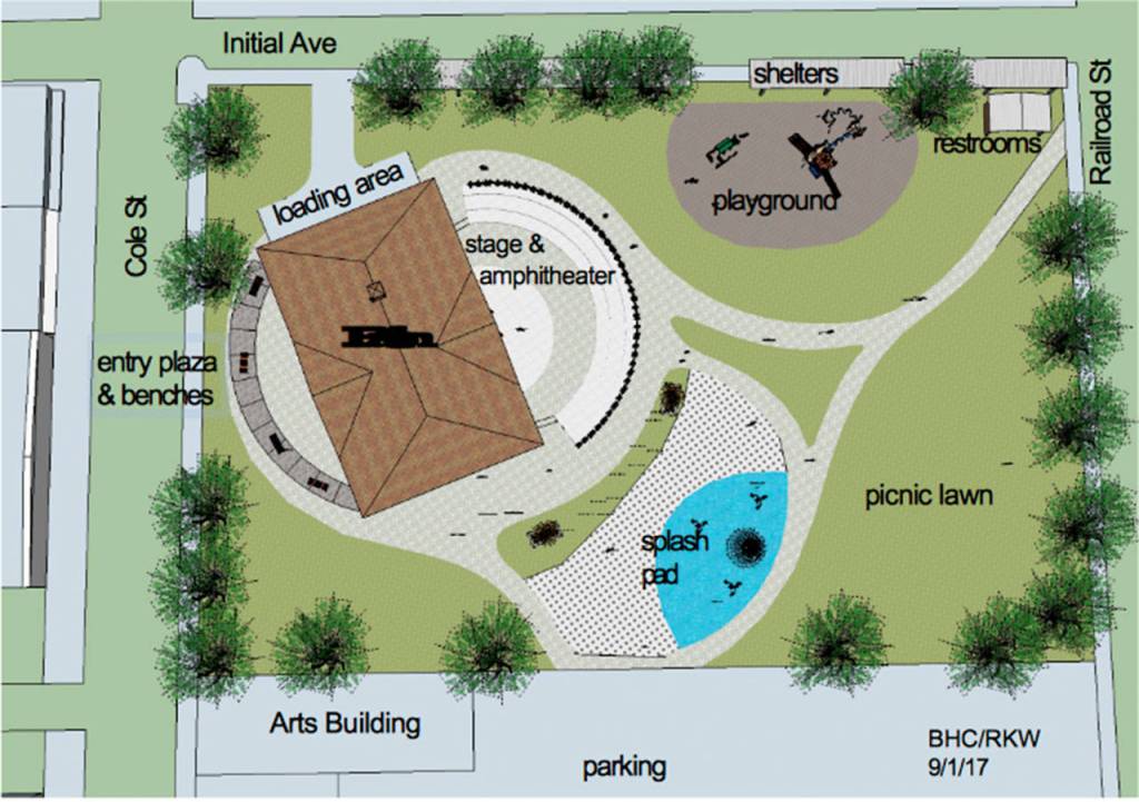 Three options were drawn up and presented during a June 2015 workshop. A month ago, BHC Consultants presented a conceptualized plan for a public plaza and pavilion between Cole and Railroad Streets.