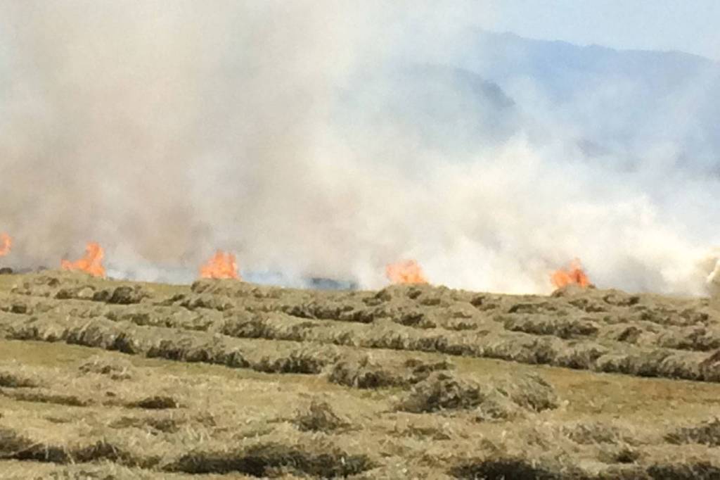 A mechanical hay baler was damaged and approximately one acre of grass was scorched yesterday in the 39200 block of SE 278 Way, after the cut grass caught fire.