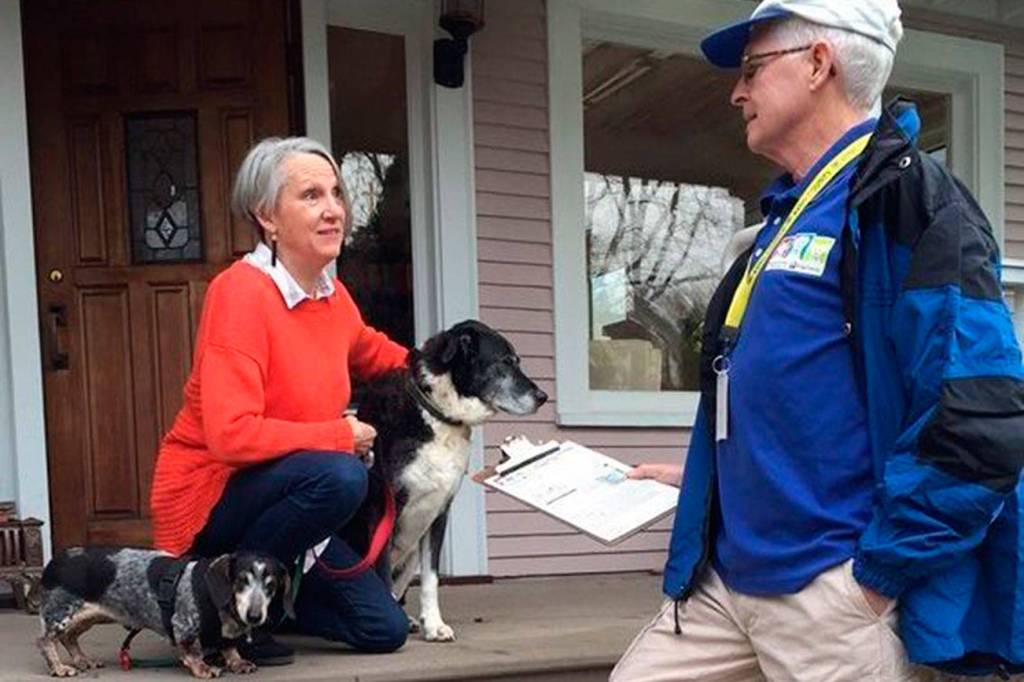 Working with partner cities such as Enumclaw, staff from Regional Animal Services of King County (RASKC) are visiting neighborhoods on weekends to educate residents about the benefits of pet licensing and ensure that pets are properly licensed.