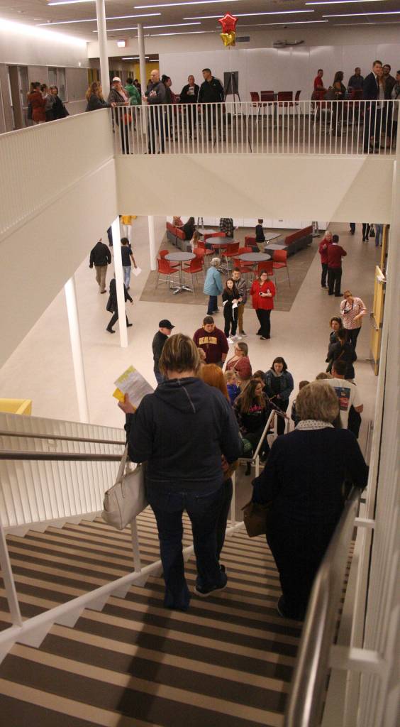 Standing before a crowd that filled the school gymnasium, School Board President Bryan Stanwood welcomed all to “a learning environment that’s absolutely breathtaking.”