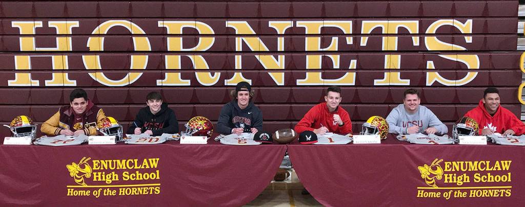 Six Enumclaw High School football players signed a National Letter of Intent, committing to five programs.