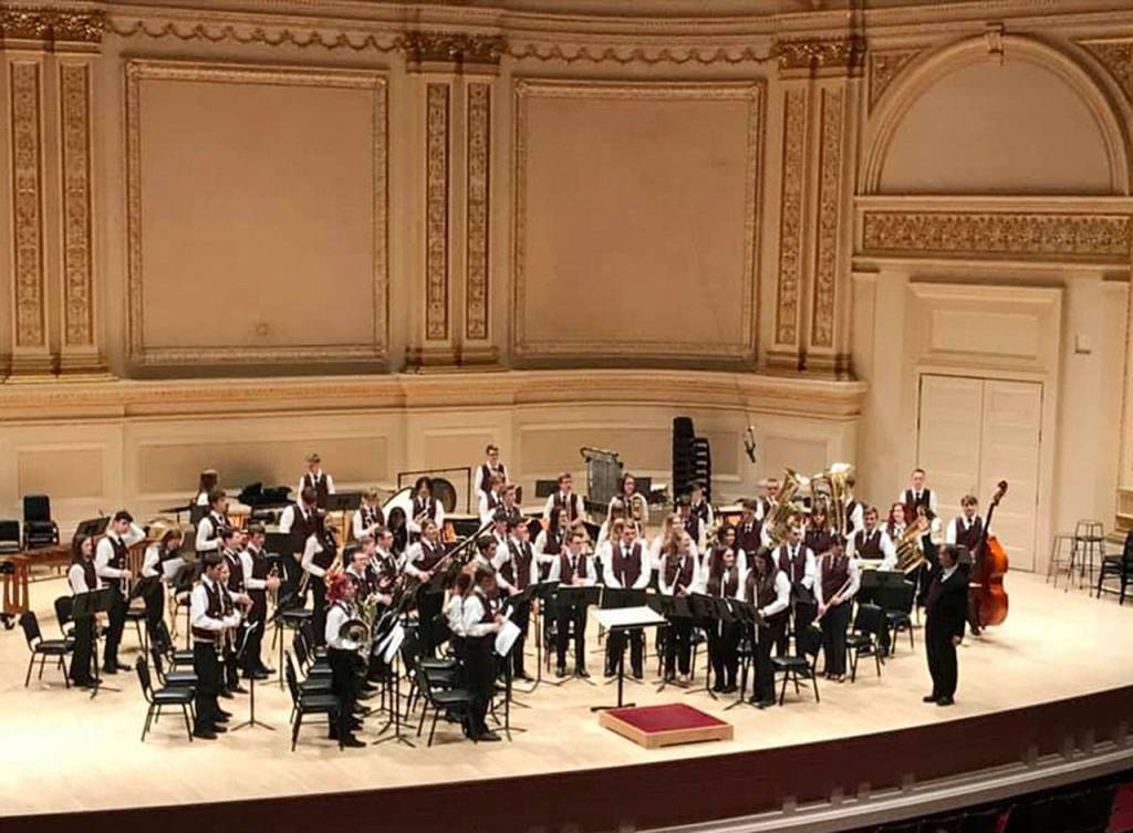A contingent of 55 band members, under the watchful eye of director Rich Kuntzelman and accompanied by 15 chaperones, recently trekked to New York City where they took center stage at Carnegie Hall.