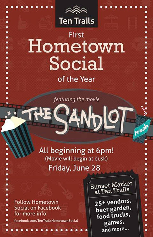 Ten Trails, the 2,200-acre, master-planned community in Southeast King County, has announced the return of its Summer Hometown Socials beginning Friday, June 28, with Movie Night featuring “The Sandlot.” The event takes place from 6 to 9 p.m. with the movie beginning at dusk in the Civic Park.