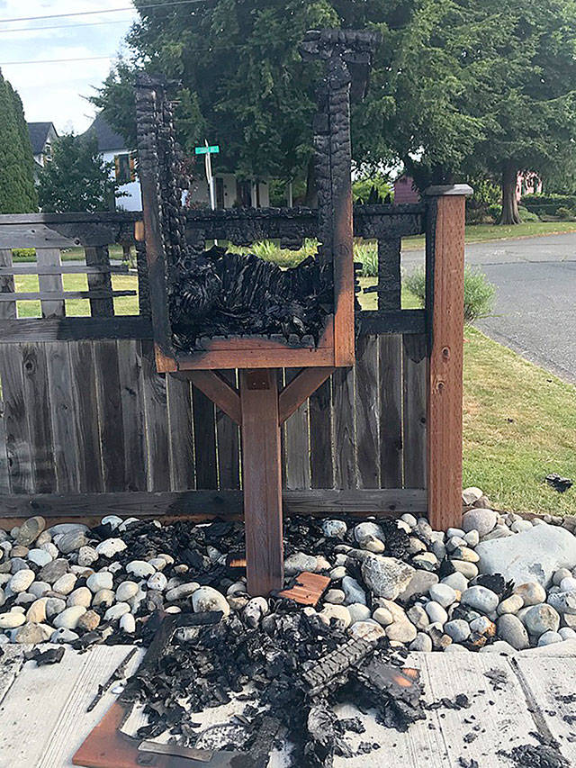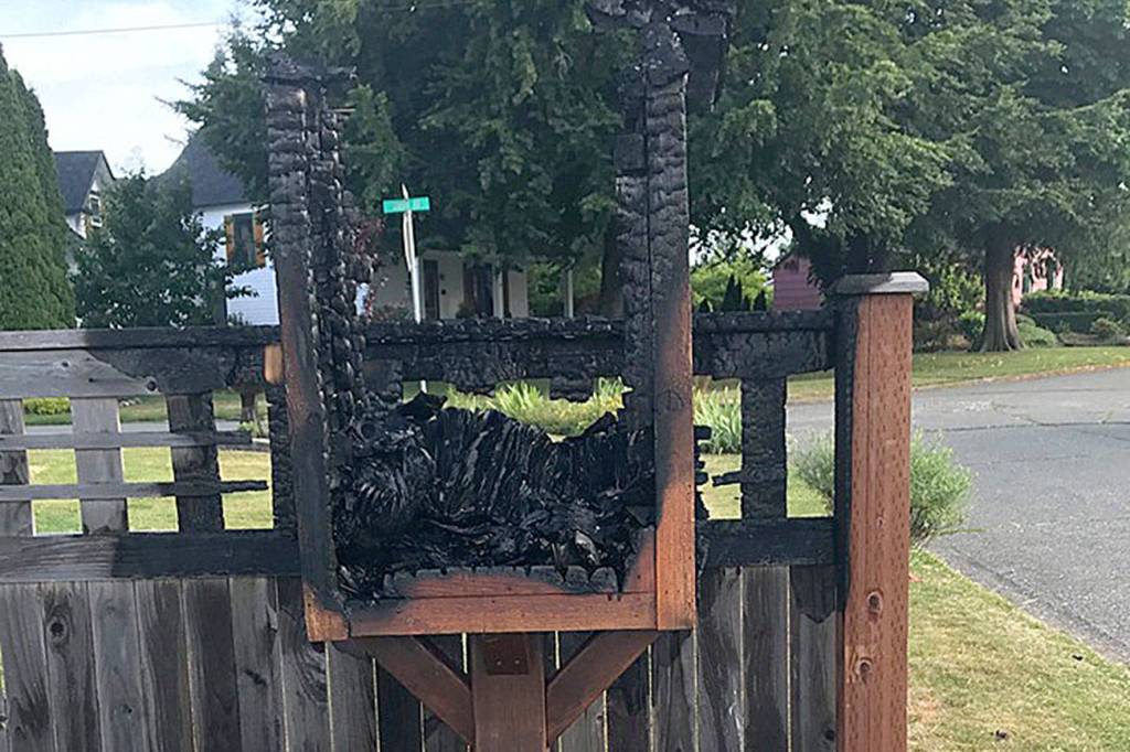 The Enumclaw Community Facebook page blew up the morning of June 26 when a local posted about the Little Free Library near her home burning down, also damaging the nearby fence.