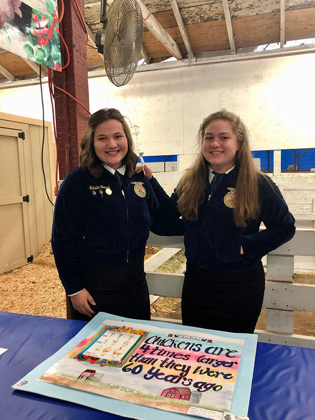 White River High School student Natalie Gomez, left, with her sister Alexandra at this year’s Washington State Fair, representing their school’s FFA Chapter, which Natalie is president of. Contributed photo.