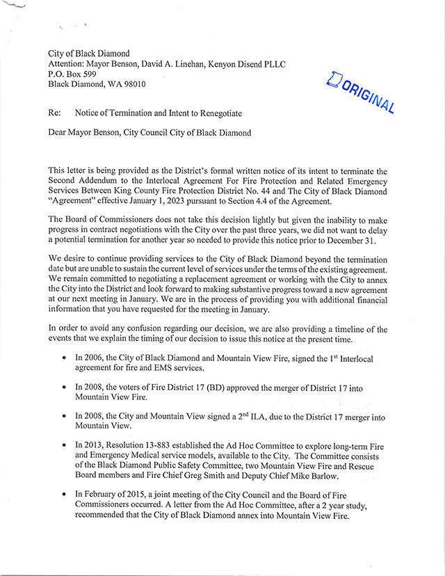 Mountain View Fire and Rescue has officially announced its intention to no longer serve Black Diamond.