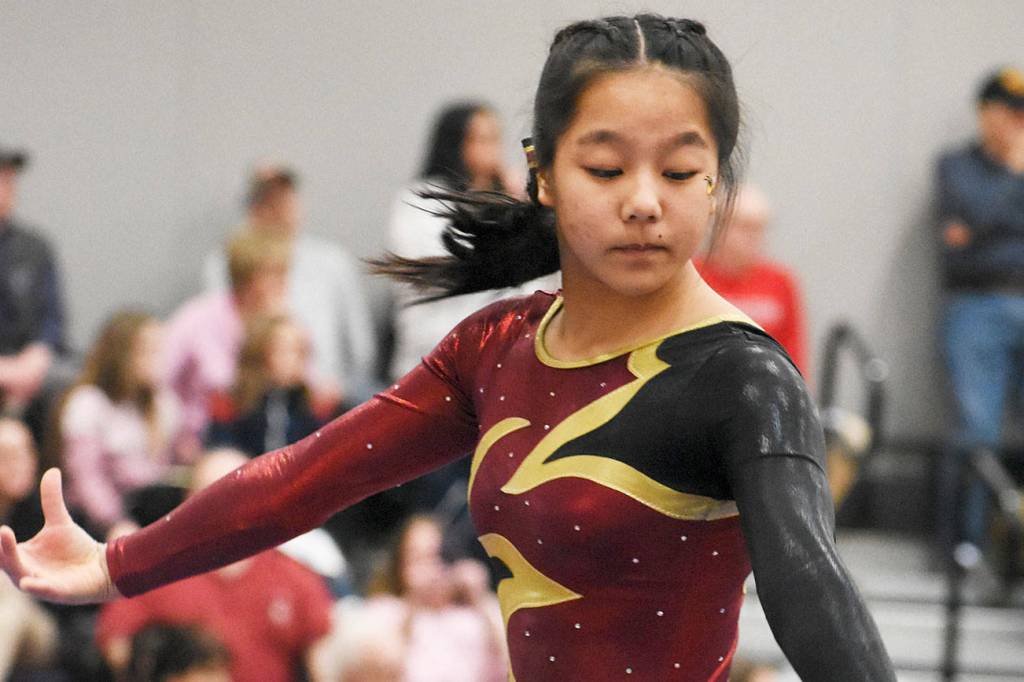 The senior turns out with the Enumclaw High School squad (because White River does not offer a gymnastics program) but did not figure into the team scoring.
