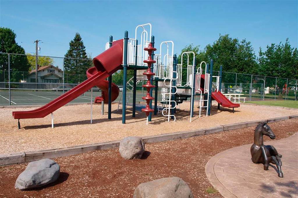 Parks like Enumclaw’s Dwight Garrett Park are now closed — no using the playground, nor the sports courts behind it and the skate park. Photo courtesy city of Enumclaw