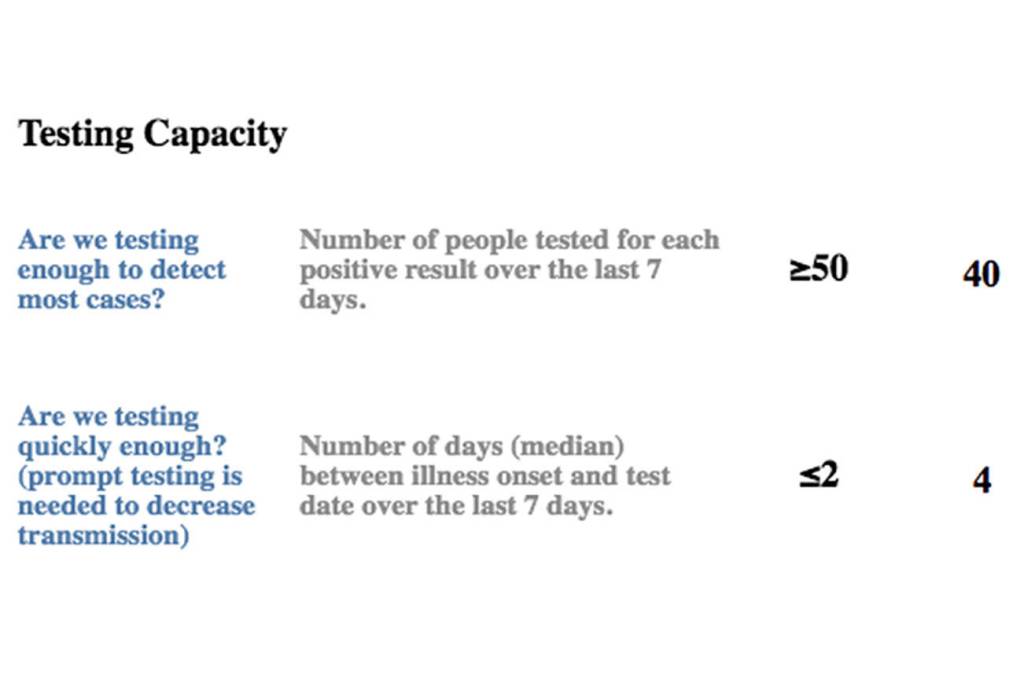 The metrics the county continues to struggle with is testing capacity.
