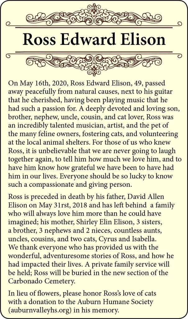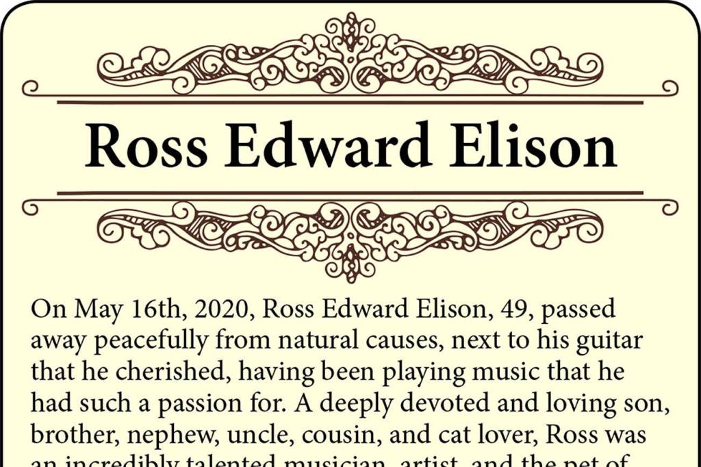 Ross Edward Elison died May 16, 2020, at the age of 49.